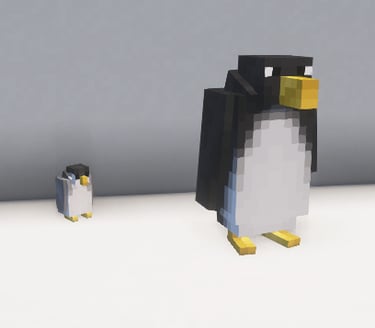 Draugiški dekoratyviniai paukščiai. Turi 2 rūšis. Vaikas ir suaugęs pingvinas